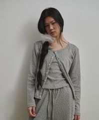 플로랄 펀칭니트 가디건 애쉬핑크