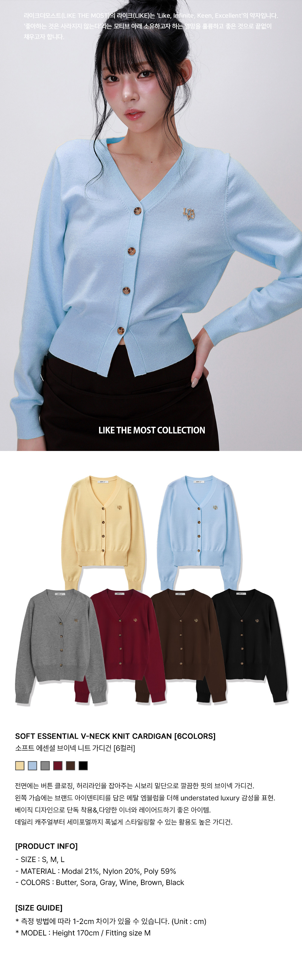 소프트 에센셜 브이넥 니트 가디건_소라