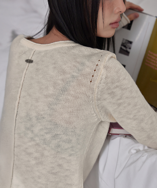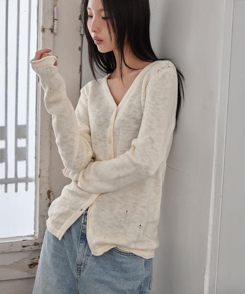 BOKSASH PENDANT V-NECK CARDIGAN, IVORY