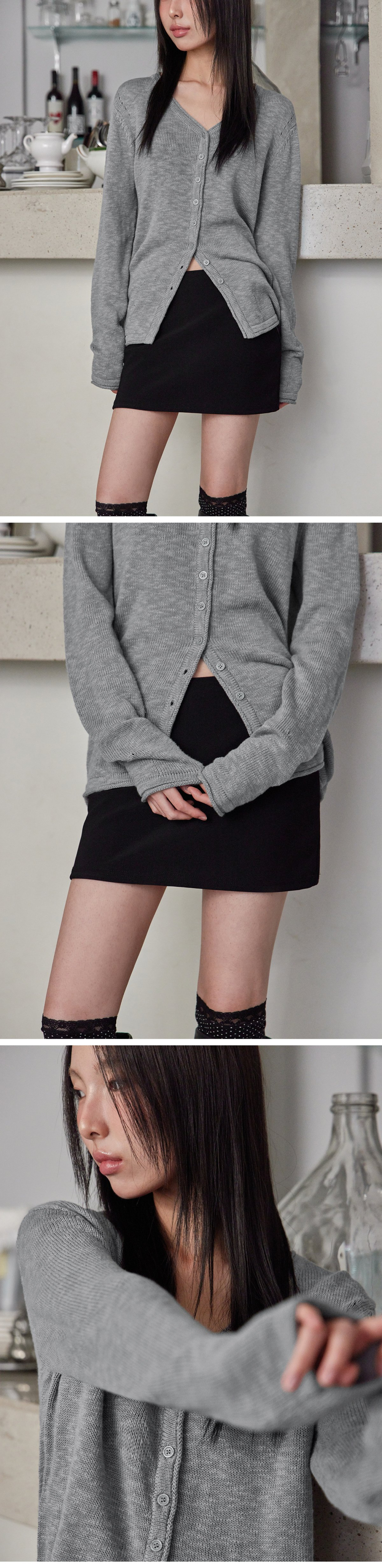 BOKSASH PENDANT V-NECK CARDIGAN, GREY