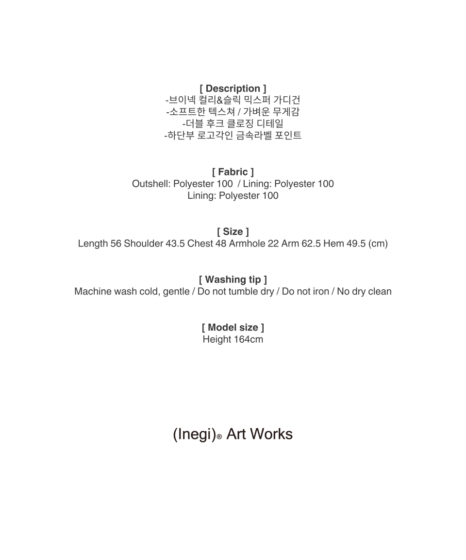 이네기(INEGI)는 일상과 비일상의 경계 속 자유로운 룩을 제시하는 브랜드입니다. 절제되고 감각적인 디테일, 독보적이며 조화로운 실루엣으로 옷을 넘어, 현대사회 도시 여성의 새로운 라이프스타일을 제안합니다.
