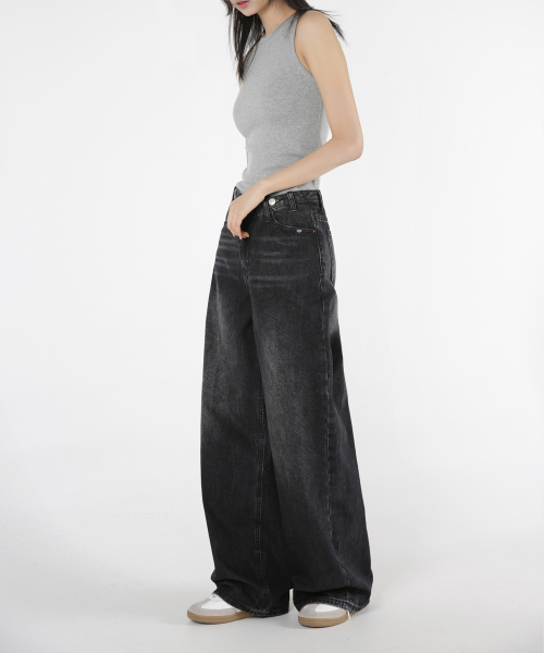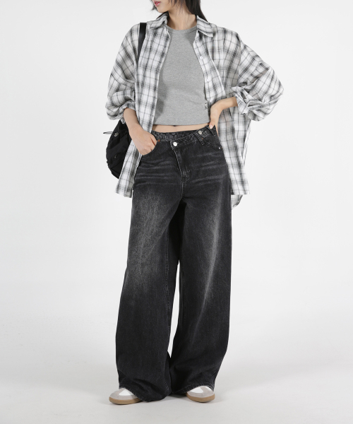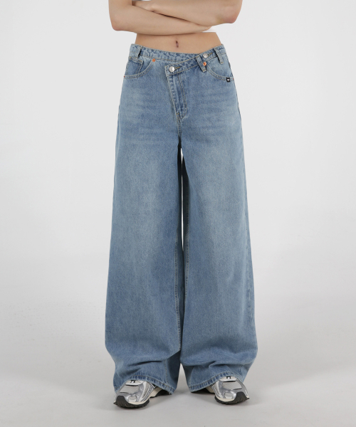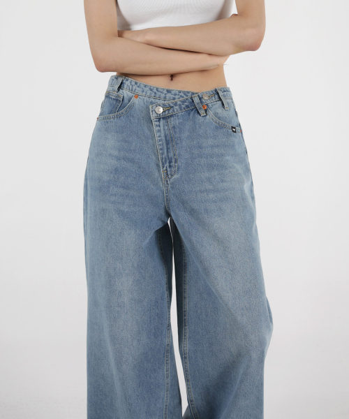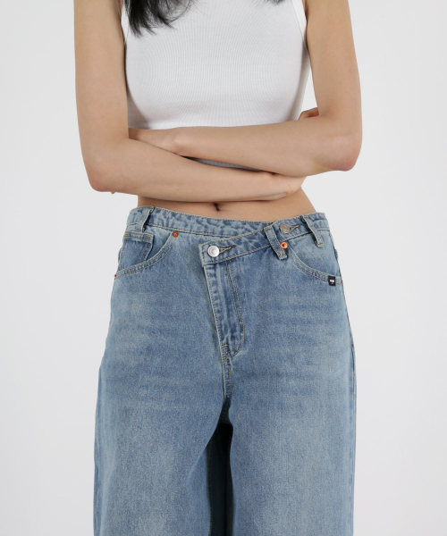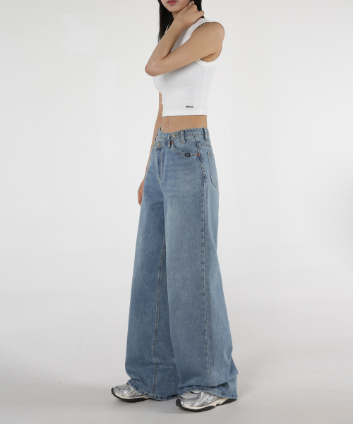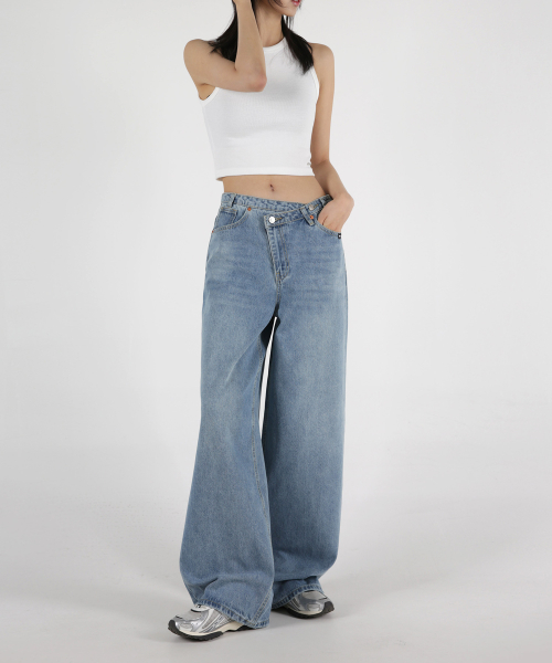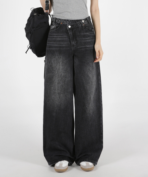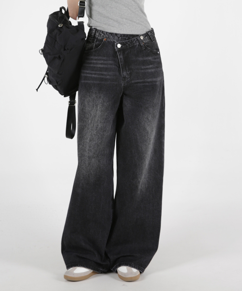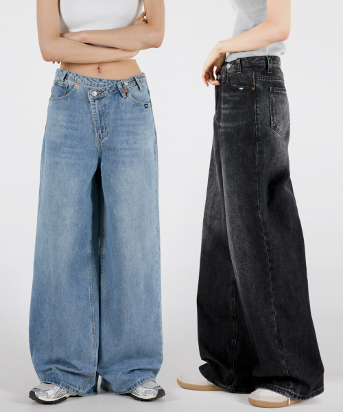 여자 2단기장 언발투버튼 와이드데님팬츠 2COLOR