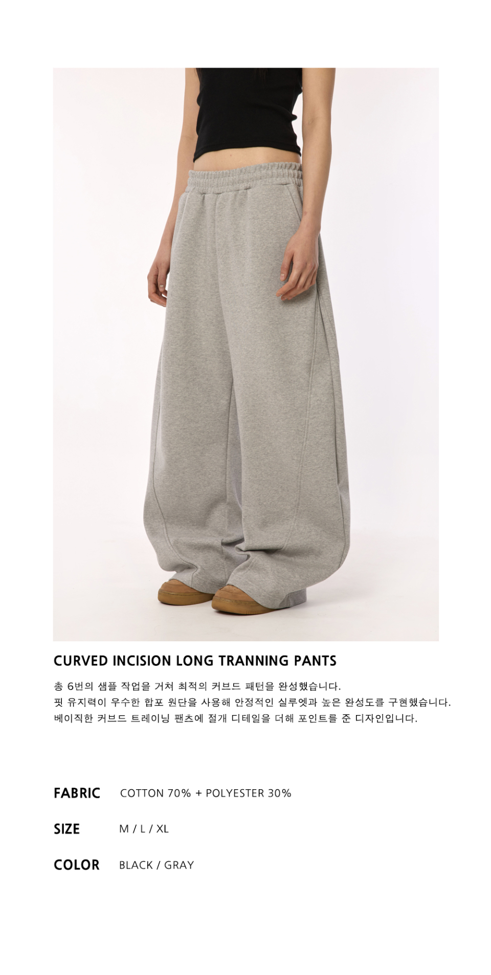 커브드 절개 롱 트레이닝 팬츠 [그레이]