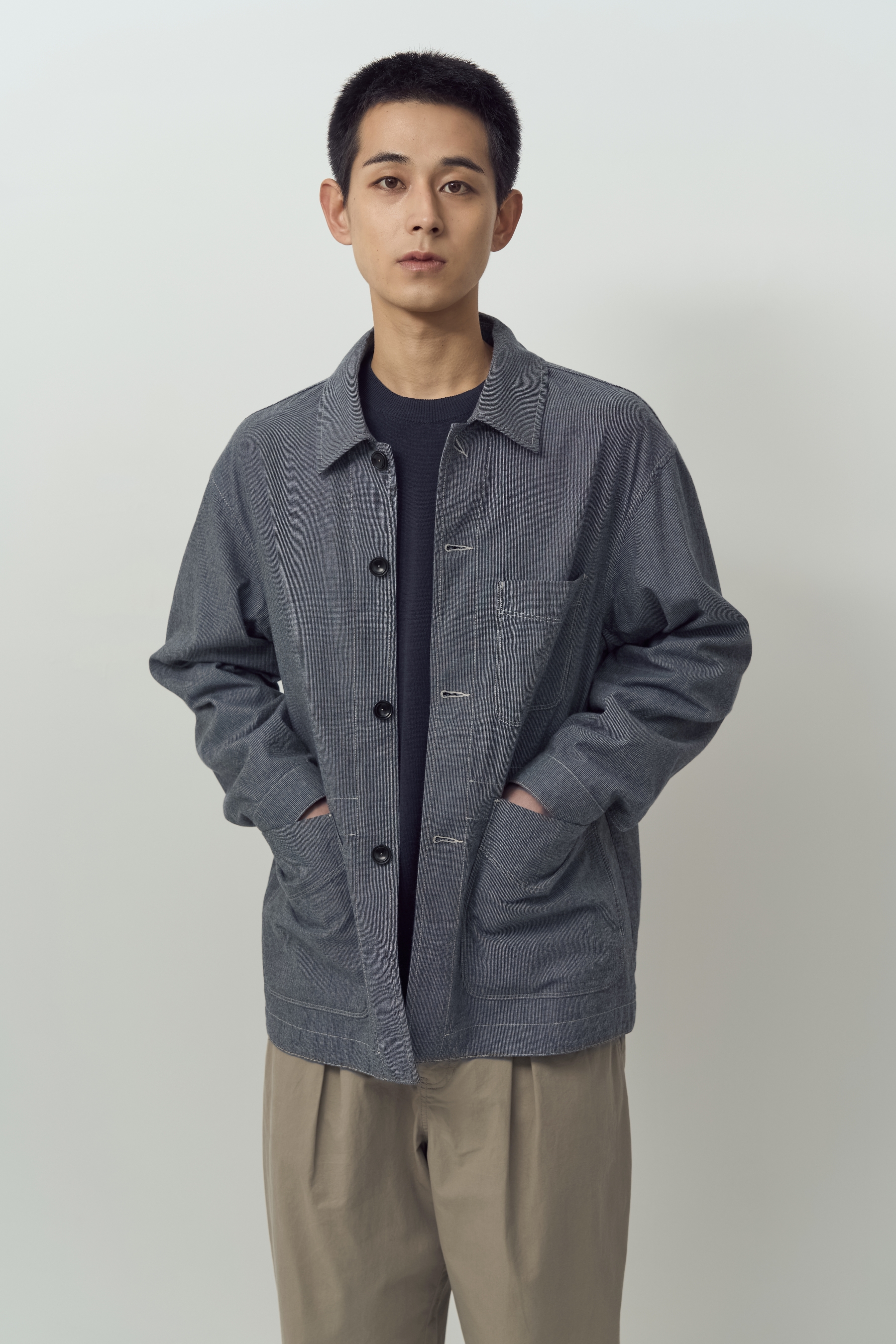 · 스트라이프 패턴 코튼 소재의 워크 재킷