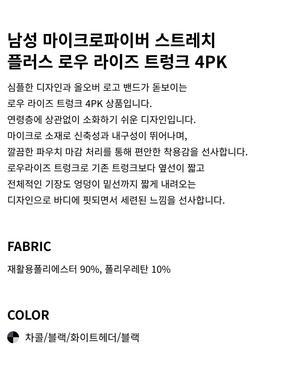 남성 마이크로파이버 스트레치 플러스 로우 라이즈 트렁크 4PK_NP2755OI7I