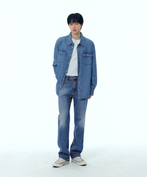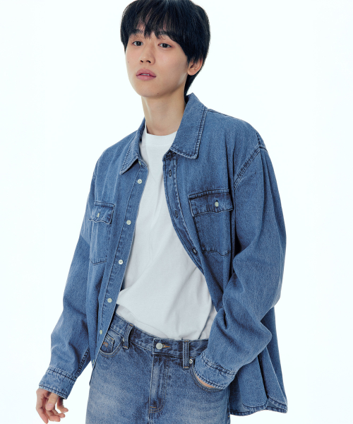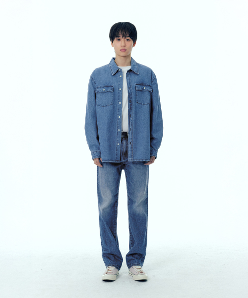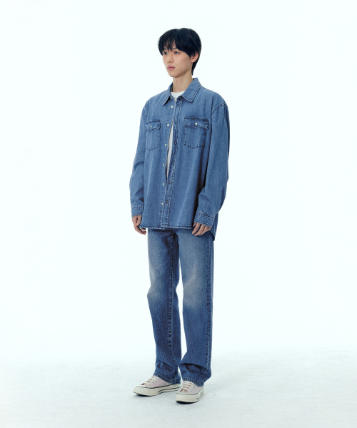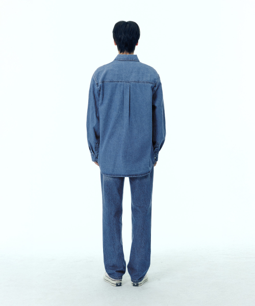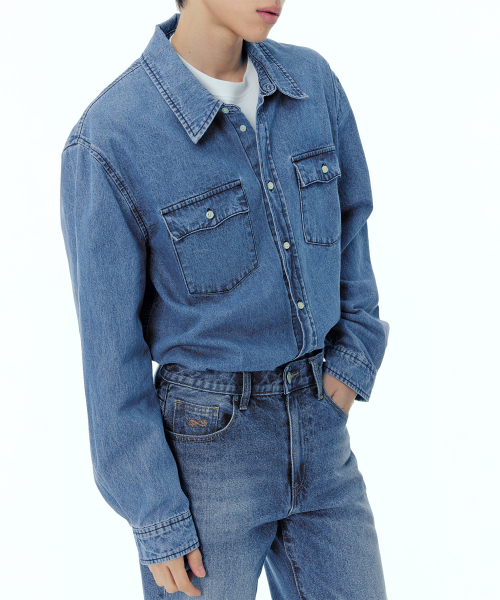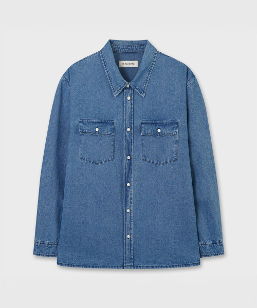 페퍼유 X 플랙 데님셔츠 미드블루