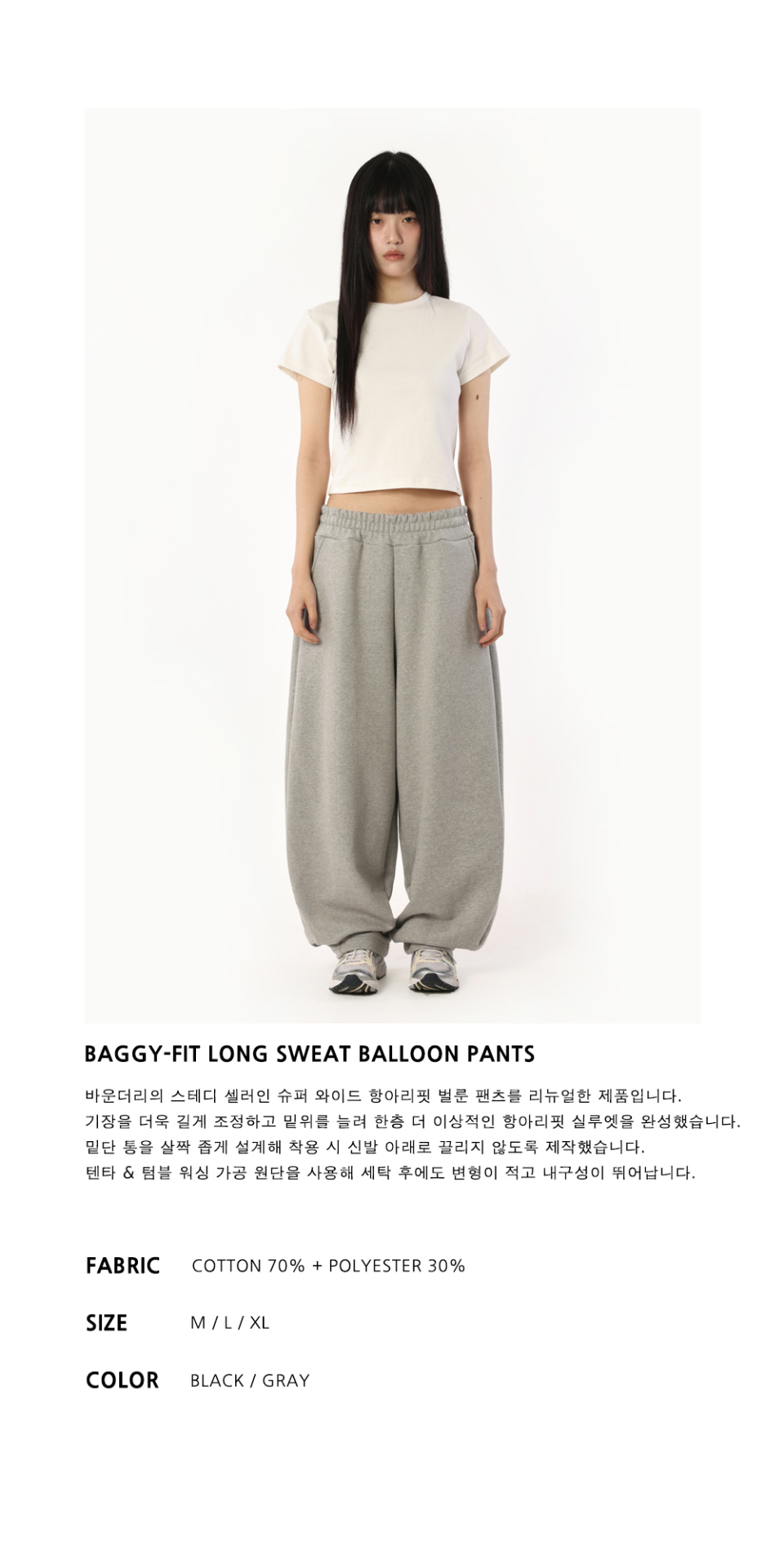배기핏 롱 스웨트 벌룬 팬츠 [그레이]