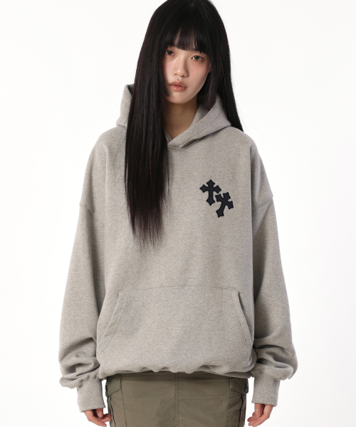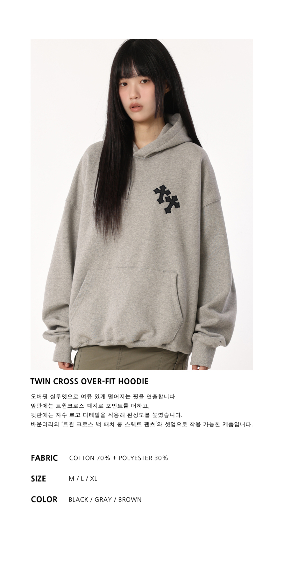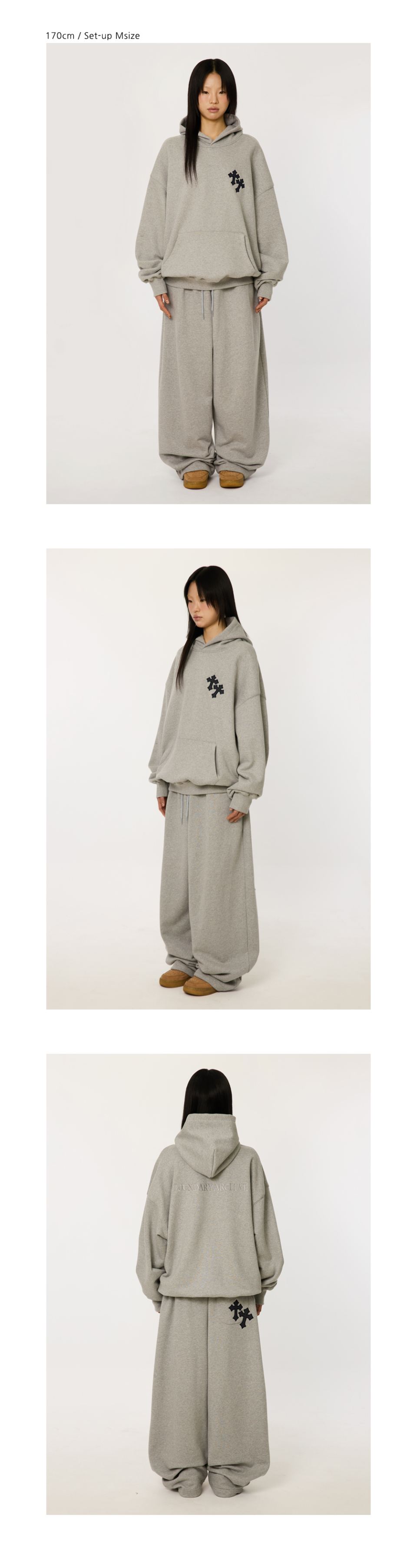 트윈 크로스 백 패치 롱 스웨트 팬츠 [그레이]