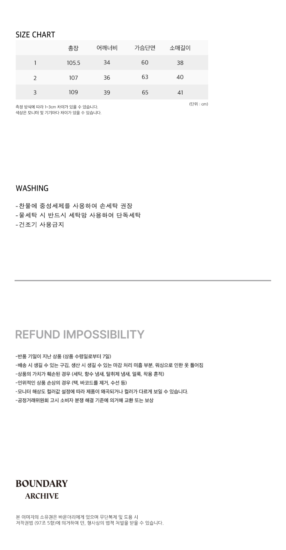 바운더리(BOUNDARY)는 현대인의 바쁜 일상 속에서도 놓칠 수 없는 깔끔한 실루엣과 색감 중심의 스타일을 추구하는 타임리스 브랜드입니다.