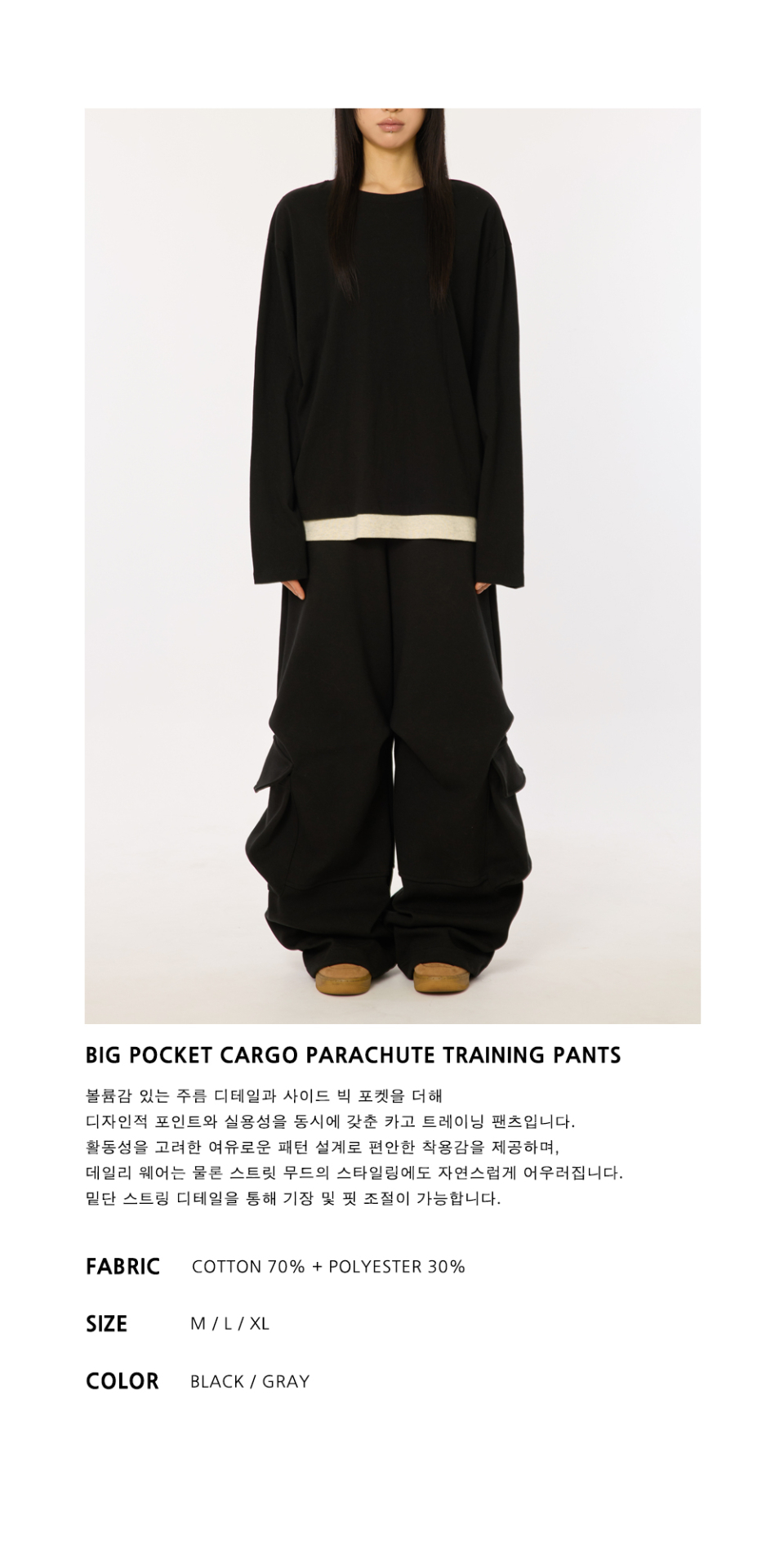 빅포켓 카고 파라슈트 트레이닝 팬츠 [블랙]