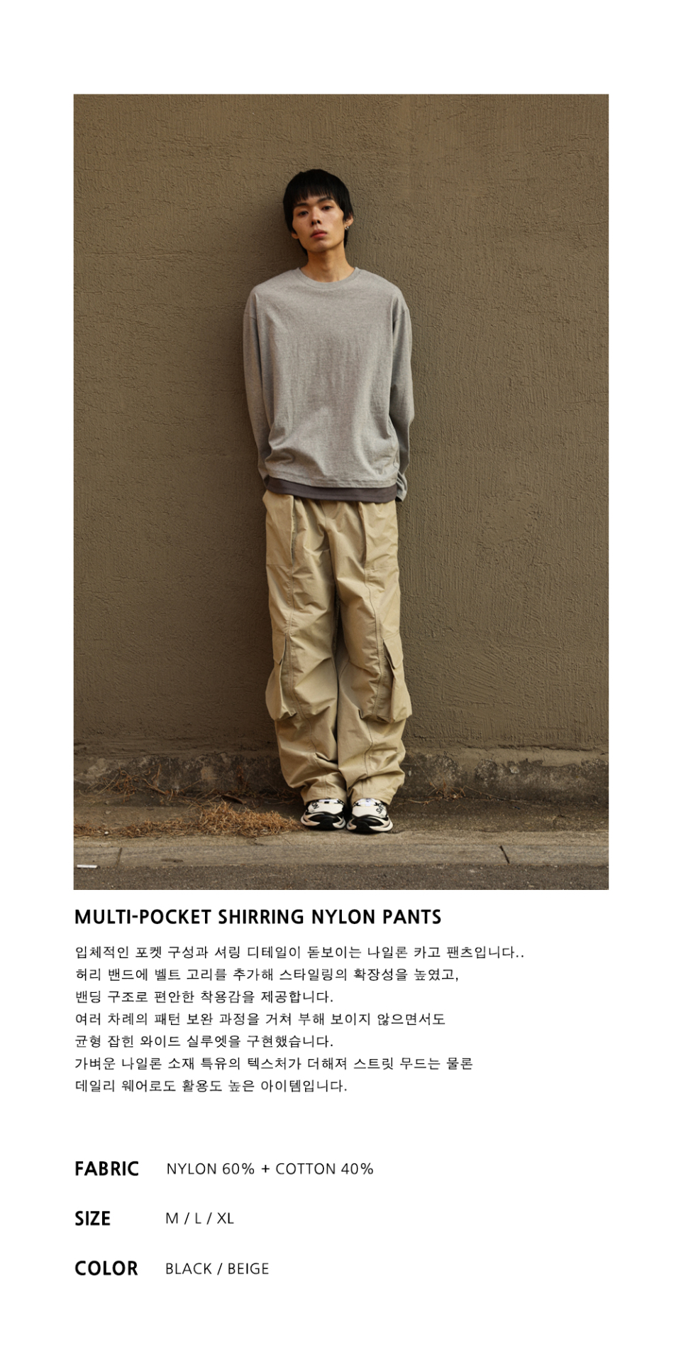 멀티 포켓 셔링 나일론 팬츠 [베이지]