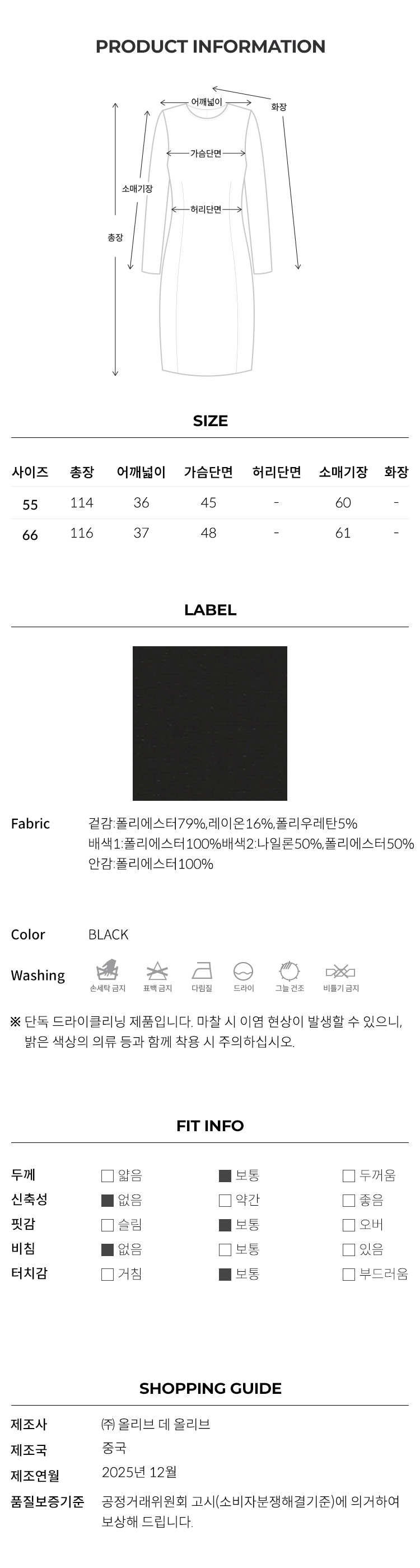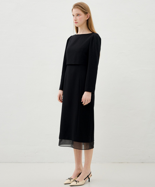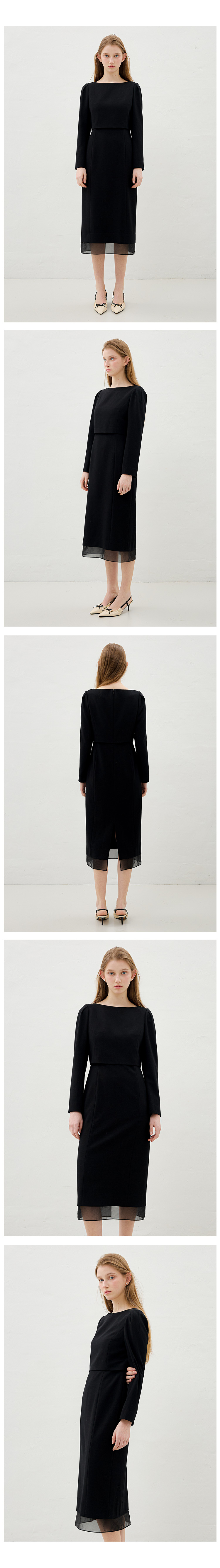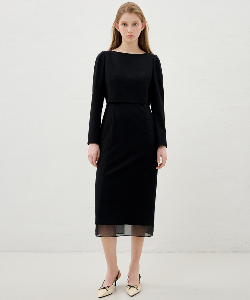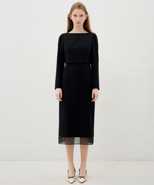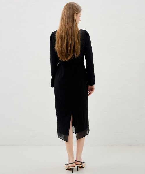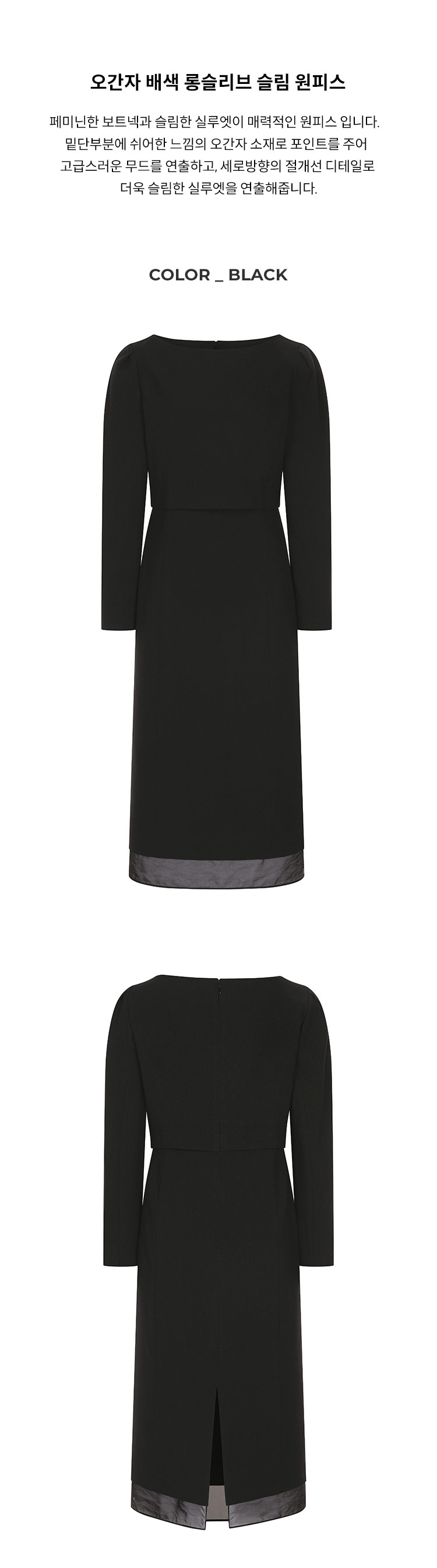 오간자 배색 롱슬리브 슬림 원피스 OW6SO1620