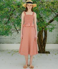 체크 스모킹 슬리브리스 원피스 OW5MO6100