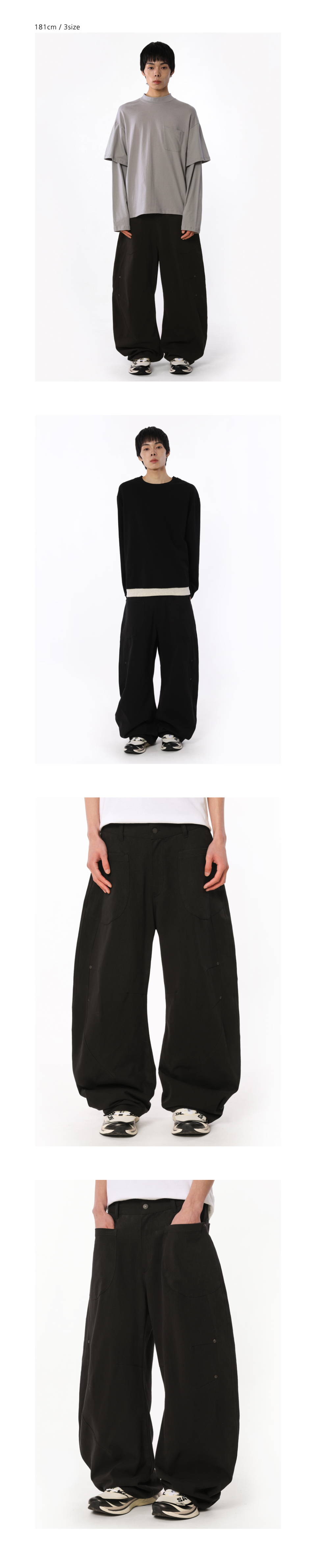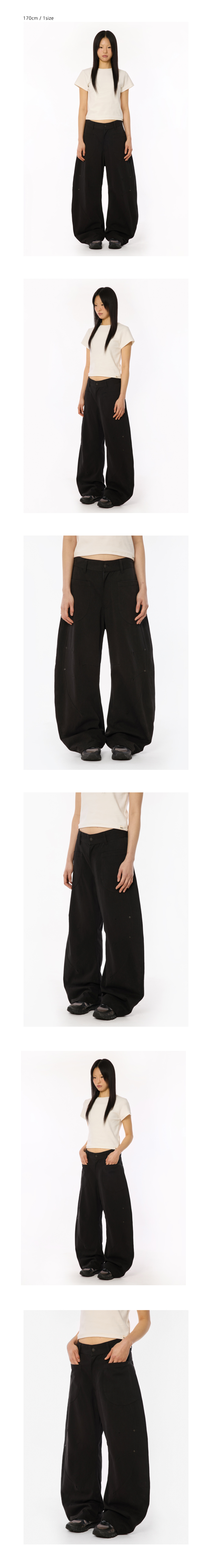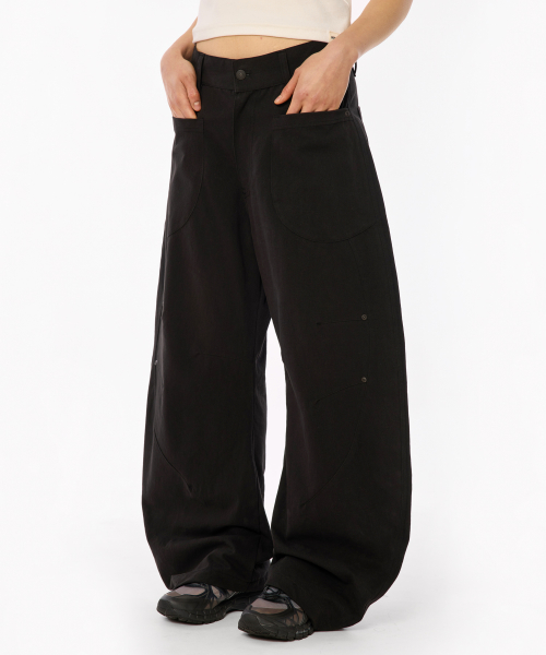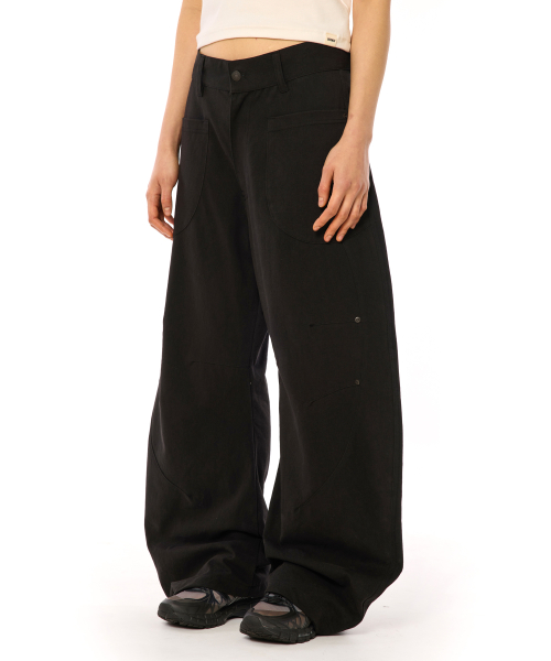 더블 절개 워싱 커브드 팬츠 [블랙]