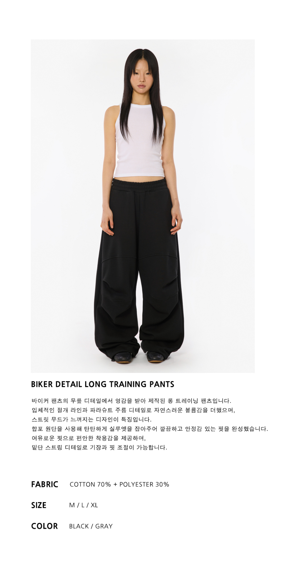 바이커 절개 롱 트레이닝 팬츠 [블랙]