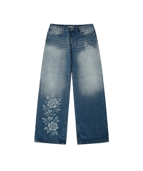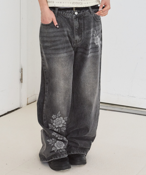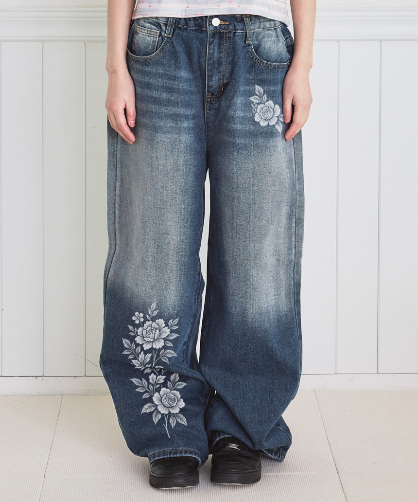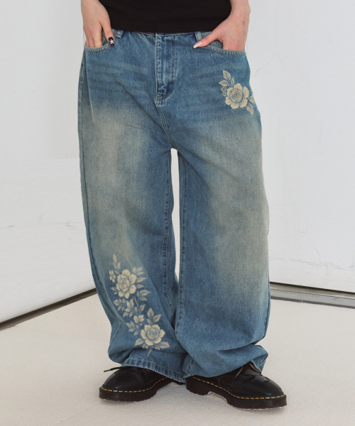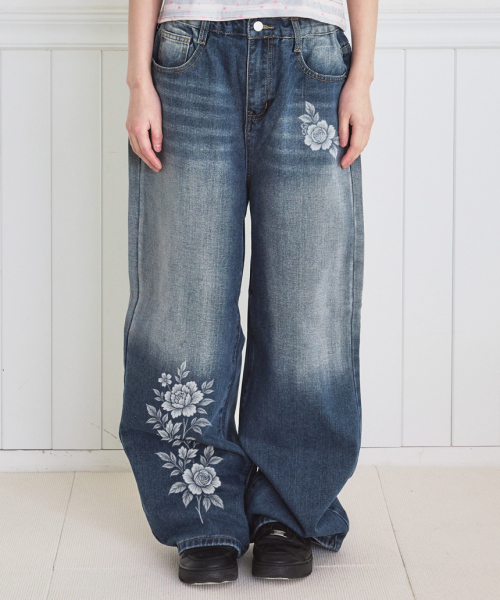 장미 프린트 밴딩 워싱 데님 팬츠 [4color]