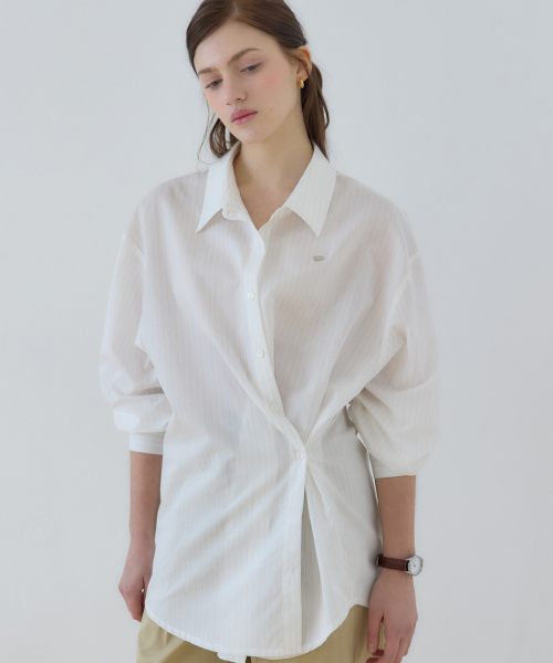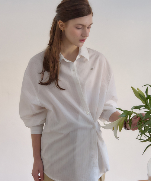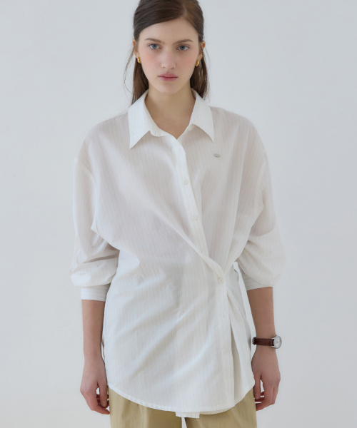 스트라이프 버튼 랩 셔츠 - Ivory