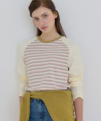 스트라이프 투톤 래글런 티셔츠 - Yellow
