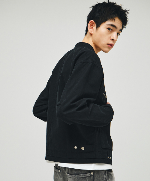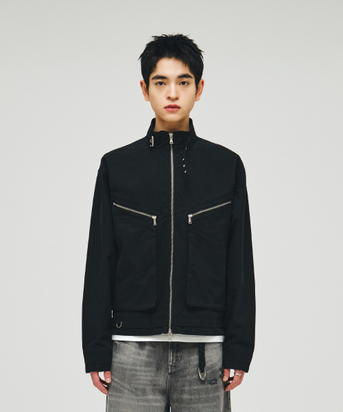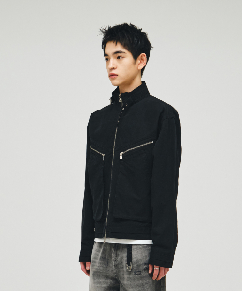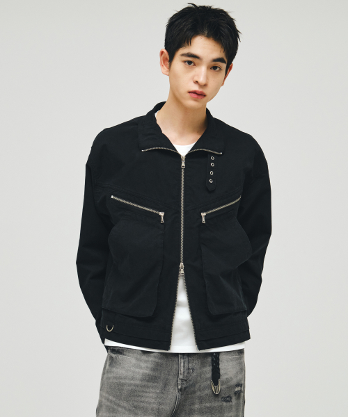 코튼 바이커 레이어드 자켓_블랙