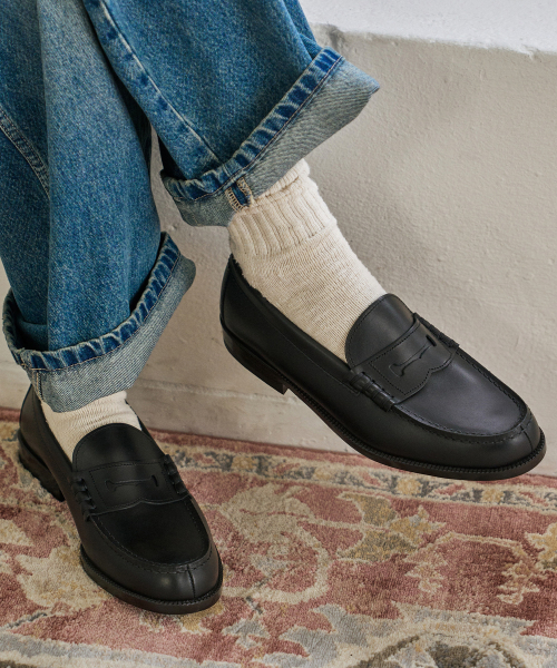 [HARUTA X INSANE GARAGE] 남성 소가죽 페니 로퍼 IG906-BLACK