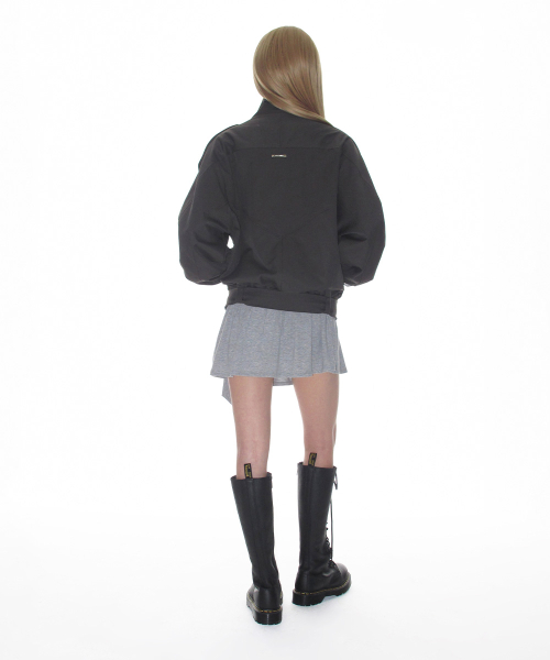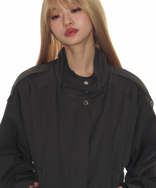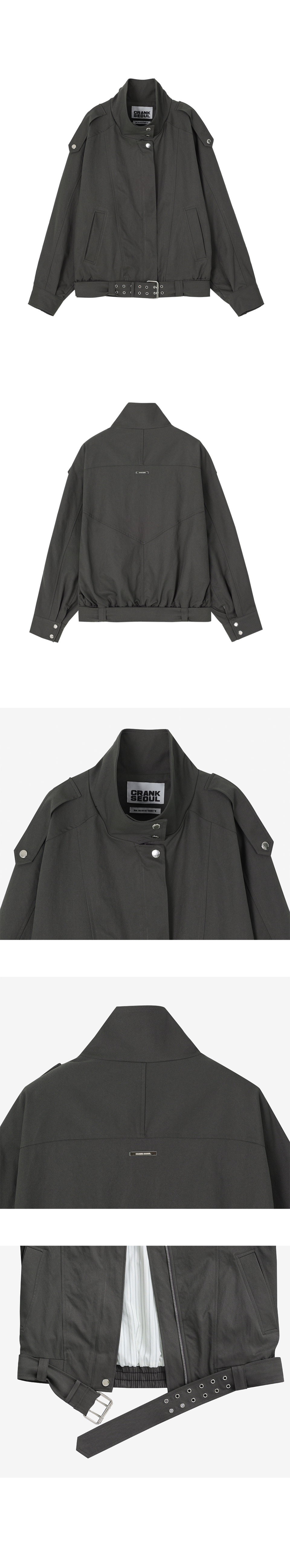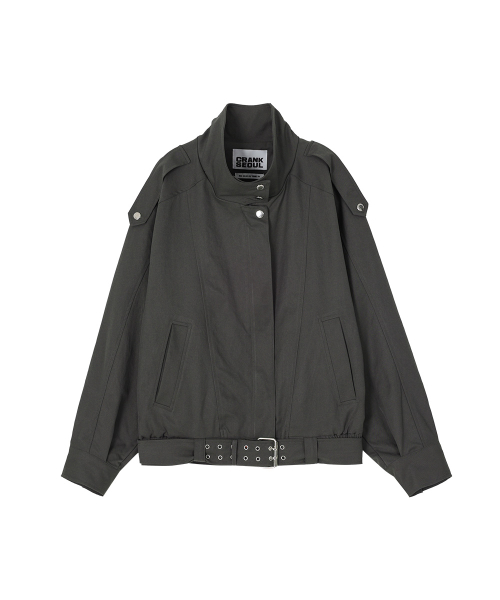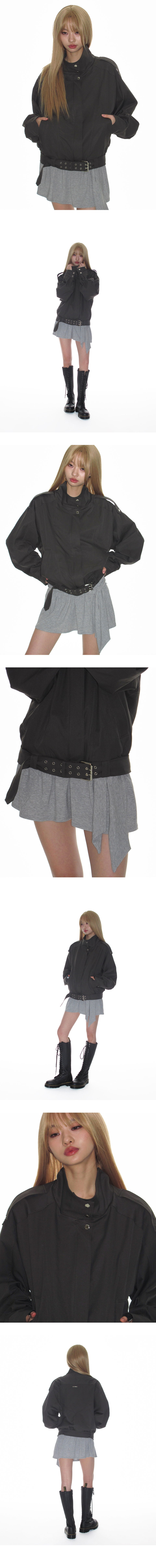 하이넥 벨티드 블루종 자켓_애쉬 카키