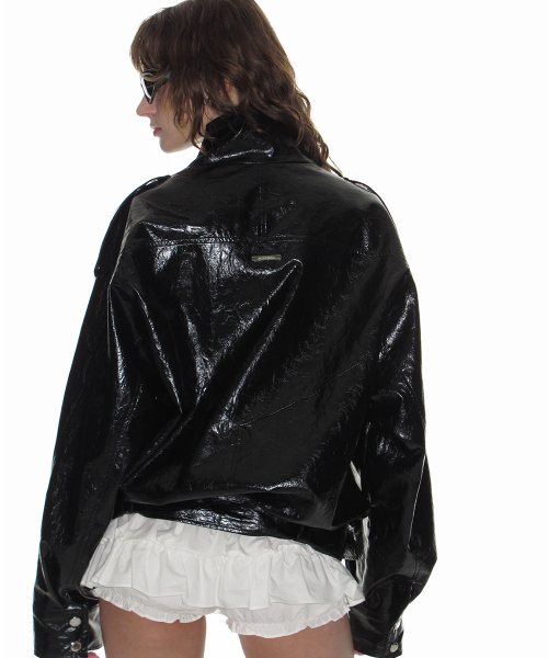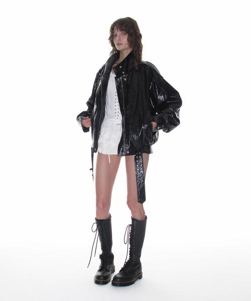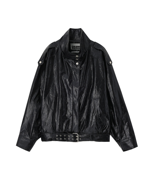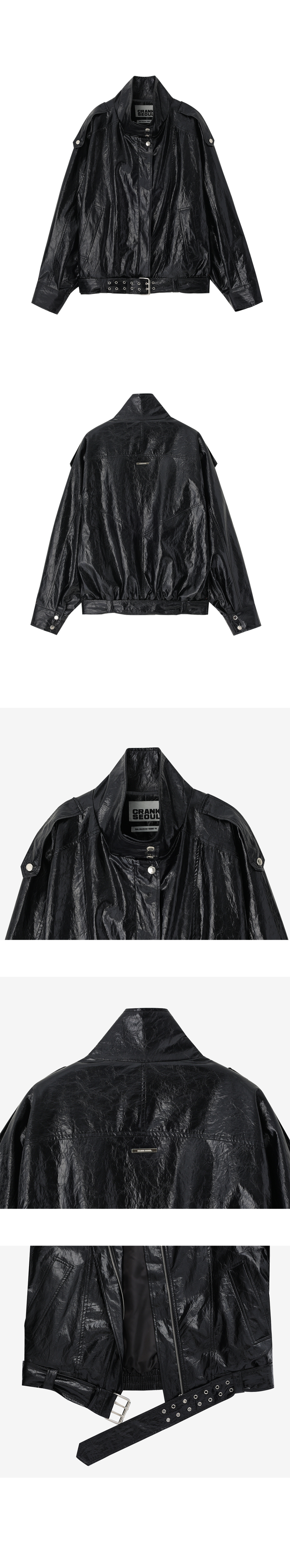 레더 벨티드 블루종 자켓_블랙