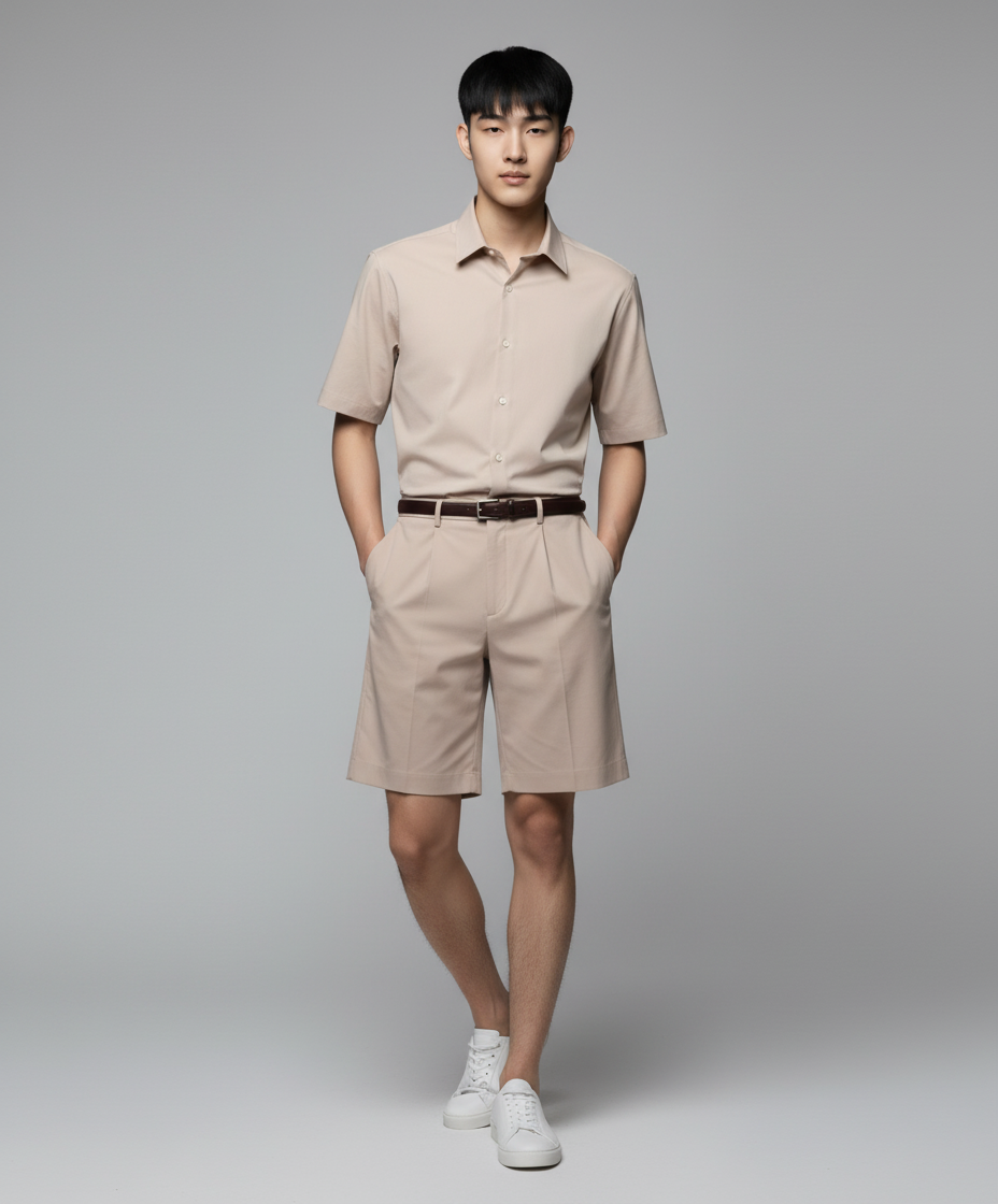 [쿨탠다드] 히든 밴딩 하프 슬랙스 [라이트 베이지] 36