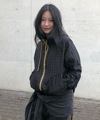 (우먼) 나글란 체크 후드 점퍼-다크 네이비