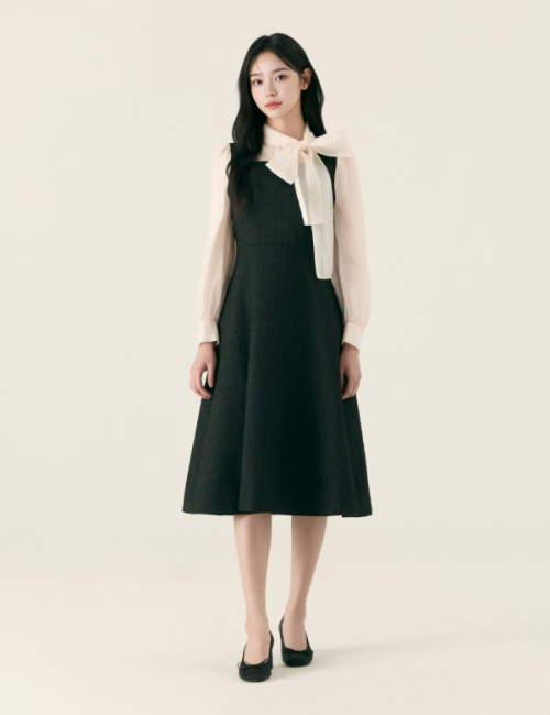 리본 셔링 롱 원피스_RMOWF23R13