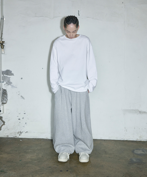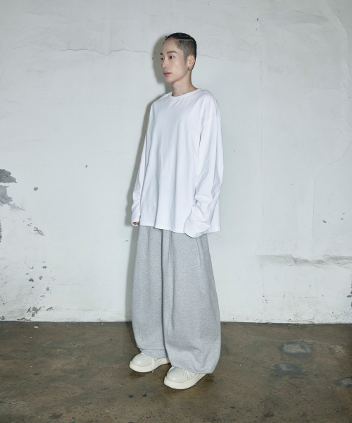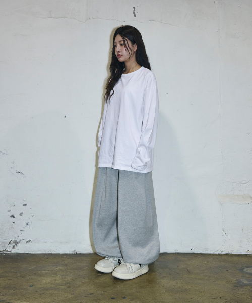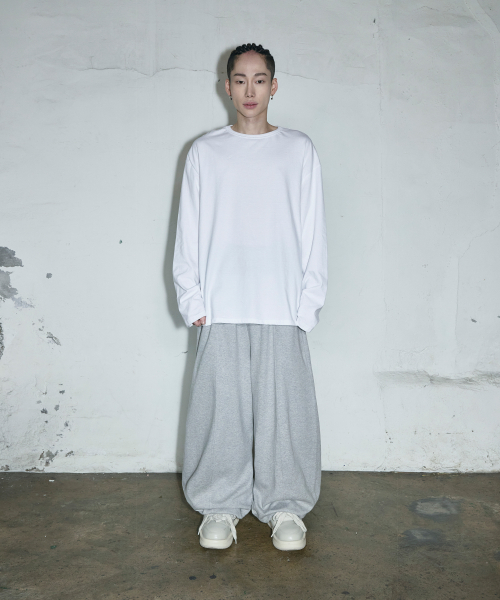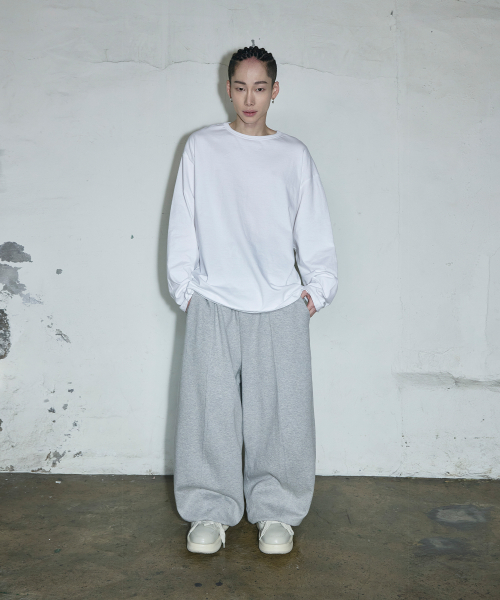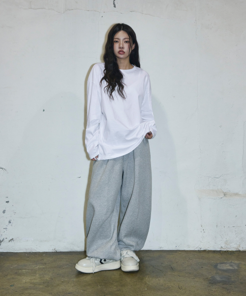 스몰 로고 멀티턱 커브드 스웨트 팬츠[그레이]