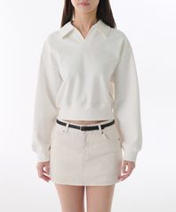 우먼즈 더블 니트 칼라드 스웨트셔츠 [크림]