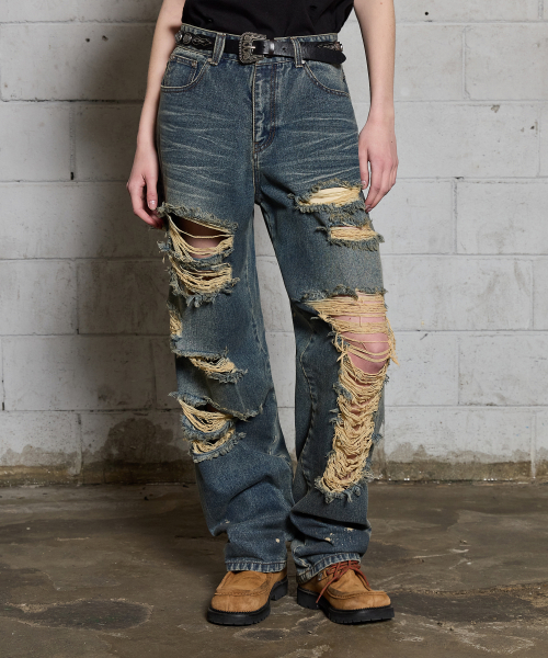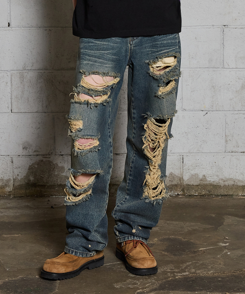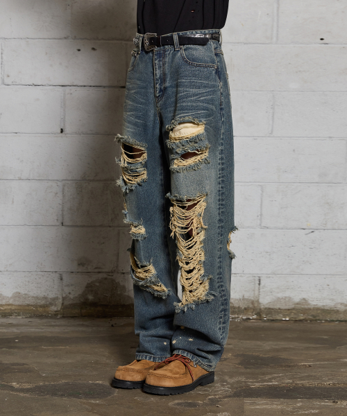 카모 믹스 데미지 와이드 데님팬츠 ( 2 Colors )