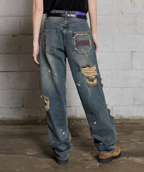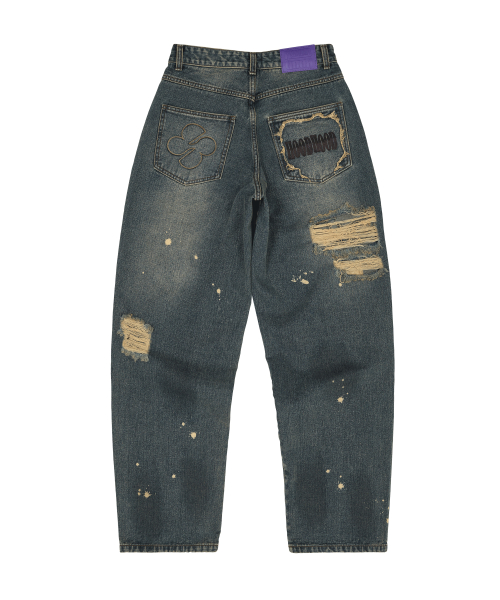 클로버 로고 디스트로이드 데님 팬츠 딥블루