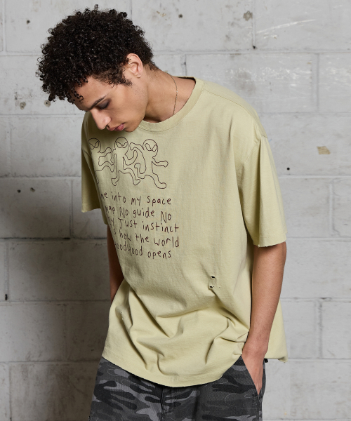 Three 에일리언 데미지 반팔티셔츠 세이지그린