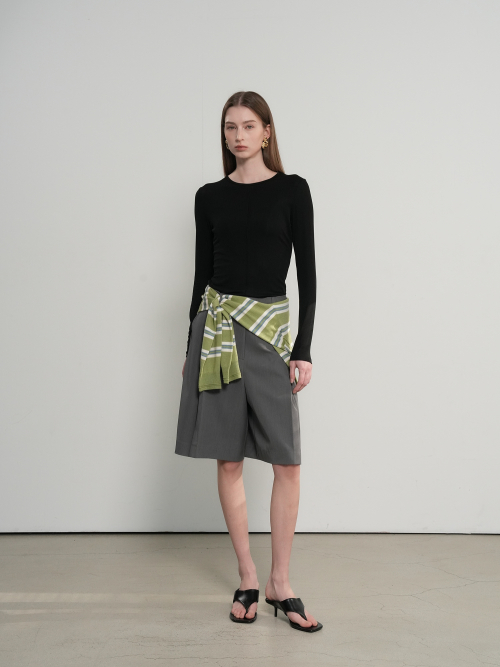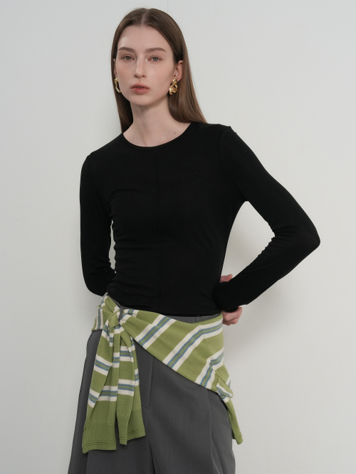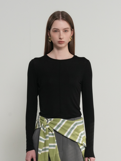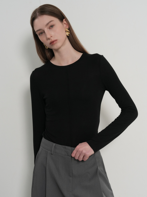 에어리 라운드넥 핀턱 티셔츠 [BLACK] / GF1LTS505