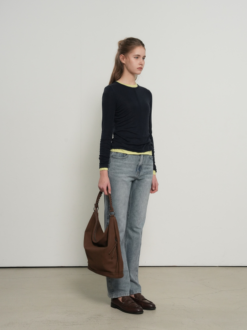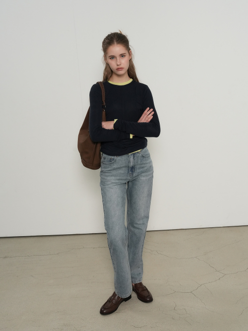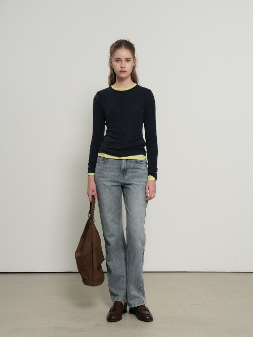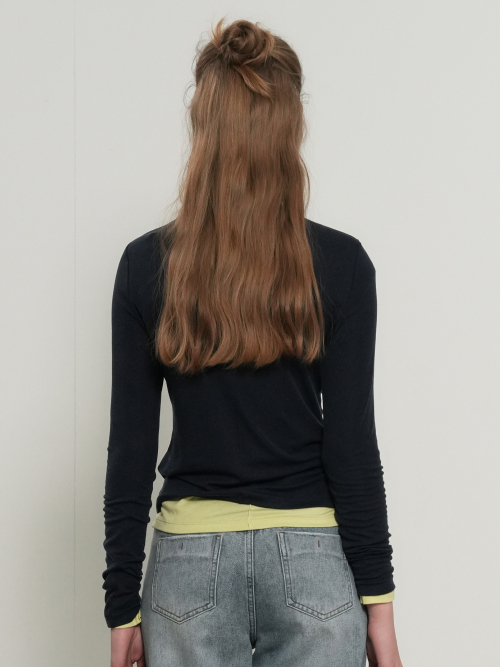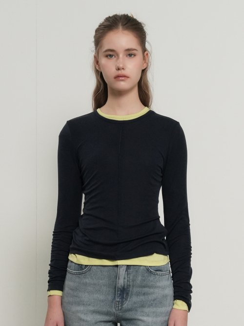 에어리 라운드넥 핀턱 티셔츠 [NAVY] / GF1LTS505