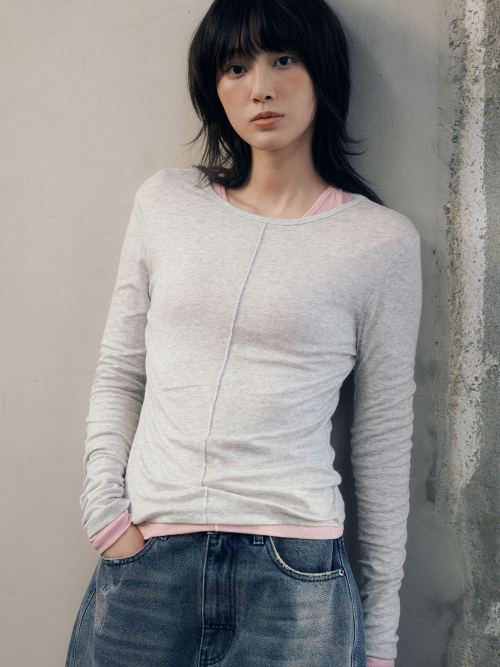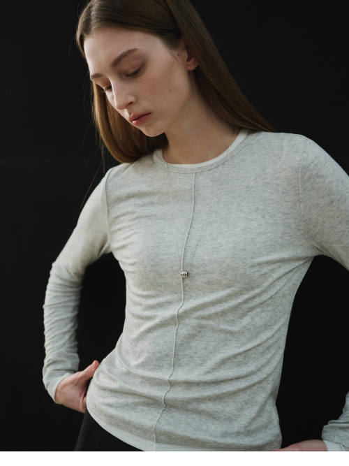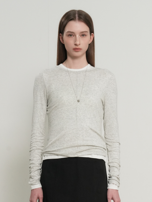 에어리 라운드넥 핀턱 티셔츠[LIGHT GREY] / GF1LTS505