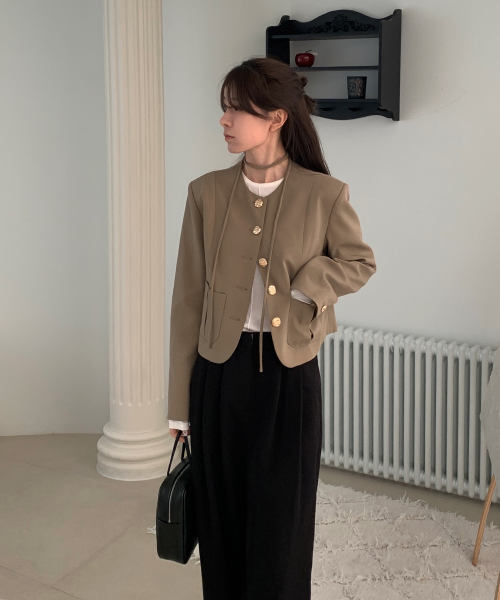 [알로하 PICK] 스트랩 노카라 자켓 [BEIGE] / GF1LJK504