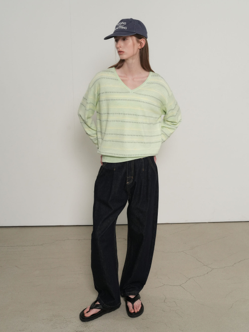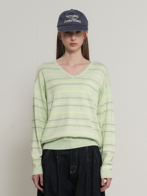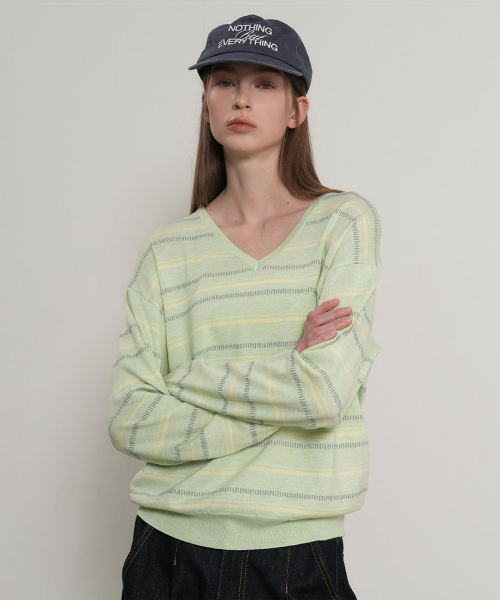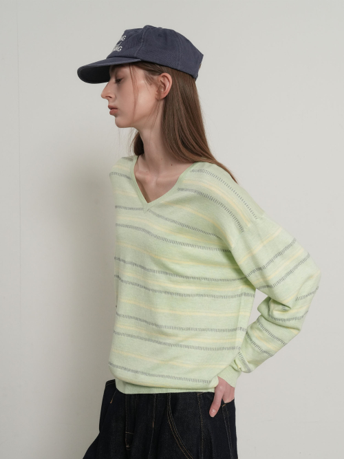 믹스 스트라이프 브이넥 풀오버 [MELON] / GF1LKP501