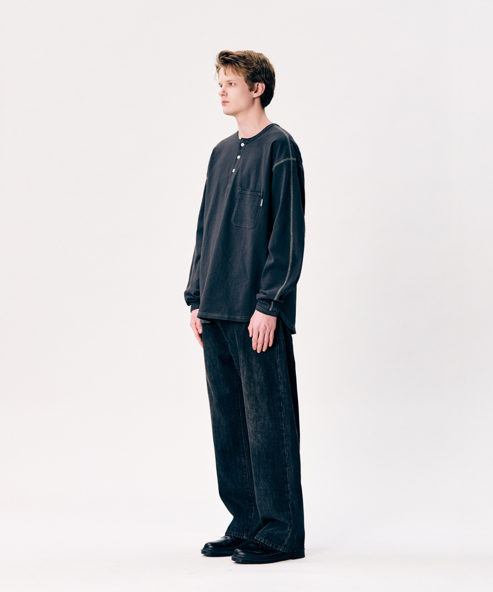 Selvedge Relaxed Denim Pants Faded Black