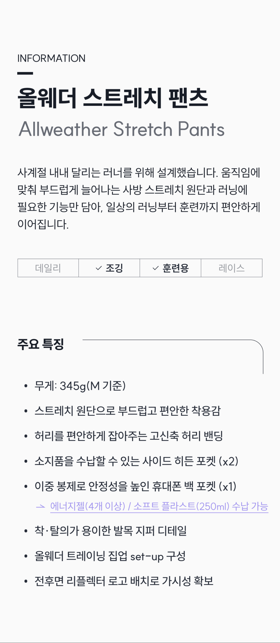 올웨더 스트레치 기능성 트레이닝 팬츠