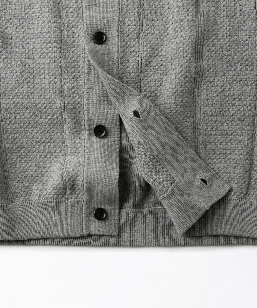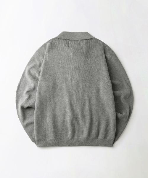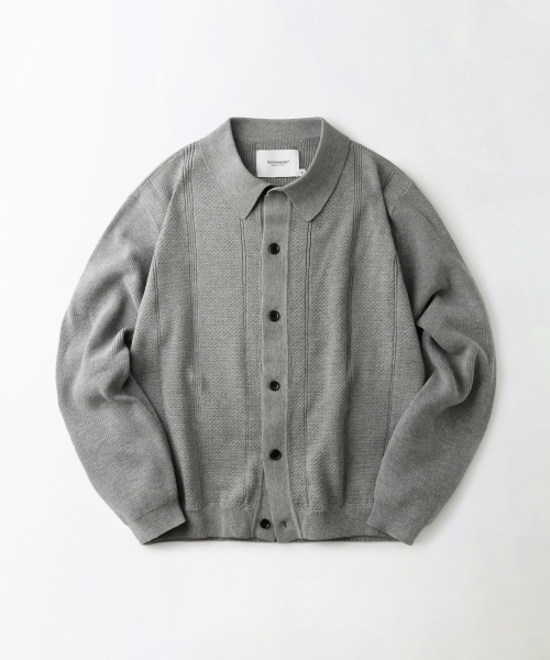 LS STRIPE COLLAR KNIT CARDIGAN_MELANGE GRAY