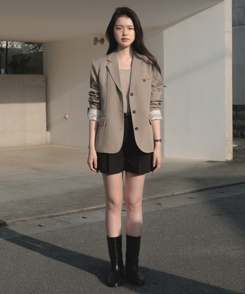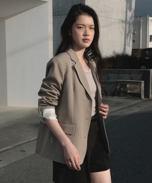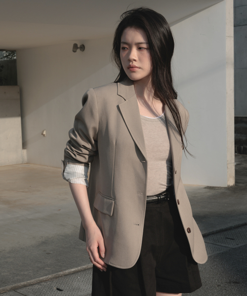 미니멀한 싱글 버튼 디자인으로 유행에 구애받지 않는 클래식한 테일러드 자켓입니다.