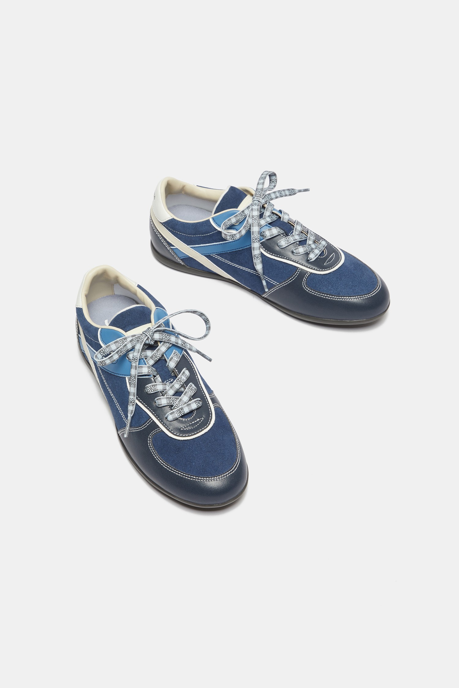- 다양한 채도의 컬러와 꽃 체크 패턴의 신발끈이 어우러져