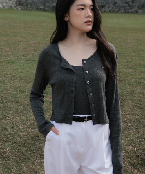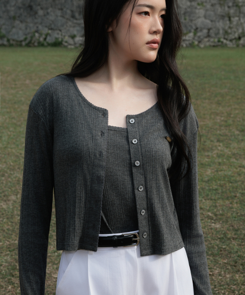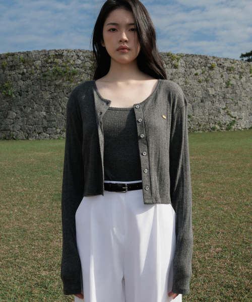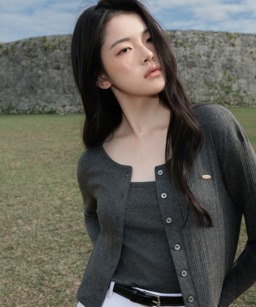 잔잔한 골지 텍스처의 가디건과 나시가 함께 구성된 세트 아이템으로 제작되어 다양하게 활용할 수 있습니다.