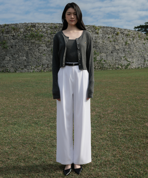 네크에 잔잔한 핀코트 자수가 포인트인 가디건 & 나시 세트입니다.