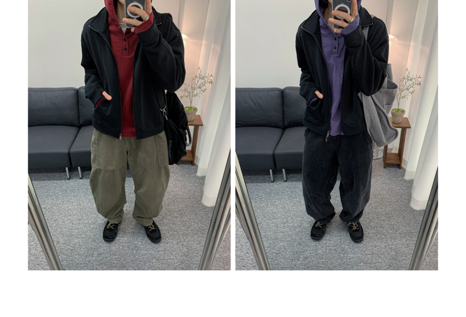 풀 집 핑거 홀 스웨트 셔츠 [블랙]