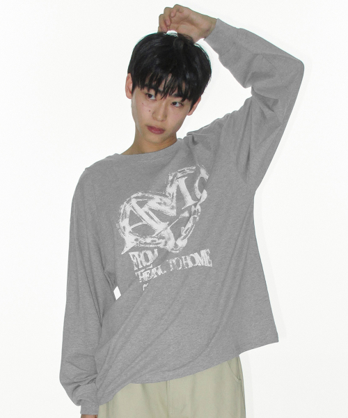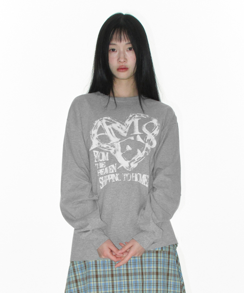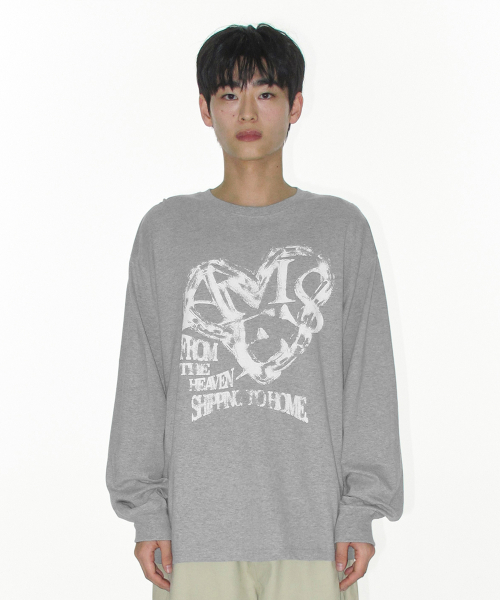 AMES HEART GRAPHIC LS TEE GREY