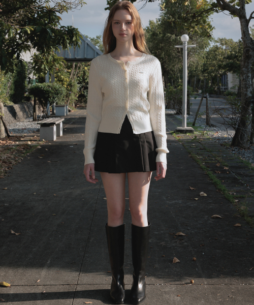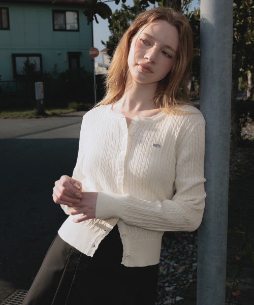 미니멀한 실루엣과 클래식한 케이블 조직으로 활용도 높은 아이템의 케이블 니트 가디건입니다.