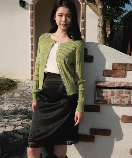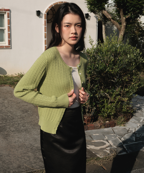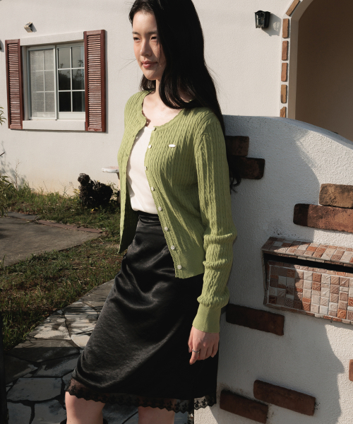 미니멀한 실루엣과 클래식한 케이블 조직으로 활용도 높은 아이템의 케이블 니트 가디건입니다.